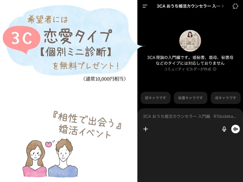 30才~45才 料金:2,000円(ワンドリンク+3Cミニ診断+相性マッチングシート付)